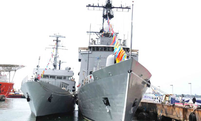 WARSHIPS—President Goodluck Jonathan, yesterday, in Lagos, inaugurated four warships acquired by the Navy.